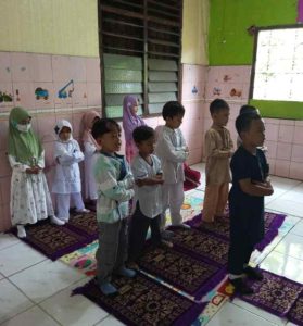 Mengenalkan pembiasaan sejak dini dalam beribadah. Mengenalkan bacaan sholat dan wirid sejak dini.