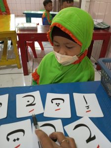 Para santri dikenalkan huruf al qur’an secara personal dan klasikal sejak dini